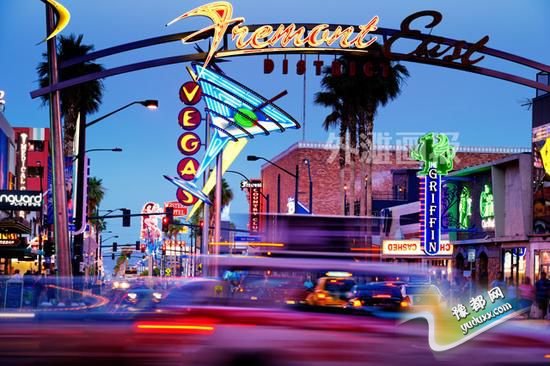 弗里蒙特大街(Fremont Street)使漫步者感受到老拉斯维加斯兴起时的情景