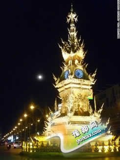 竣工时间:2008年;设计师:Chalermchai Kositpipat;特点:位于市中心,每年晚上7、8、9时,金色的钟楼都会上演音乐灯光秀。该钟楼的设计师Chalermchai Kositpipat也曾设计了清莱白马寺。