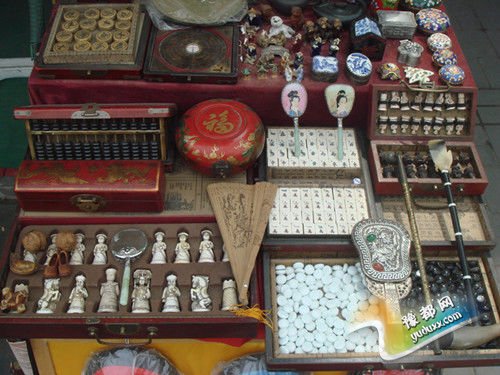 琉璃厂除去书店,就是古玩铺,“古玩”在文人口中称“文玩”,意思是文人雅玩之物,若从历史文化的角度来说也是可以的,因为要玩这些古玩艺儿,不是一般人都玩得通的,必须具备些历史文化知识才行,其意义比“古玩”还广泛,因它包含新的,而不仅仅是古的。古玩铺都是为富人有权势者预备的,一般穷读书人是不敢问津的。在《藤阴杂记》中有程晋芳移民,以诗寄袁枚,诗中有“势家歇马评珍玩,冷客摊前向故书”句,就说明古玩铺历来都是权势豪绅者光顾的地方,一般人只能在旧书摊里选些物美价廉的旧书而已。