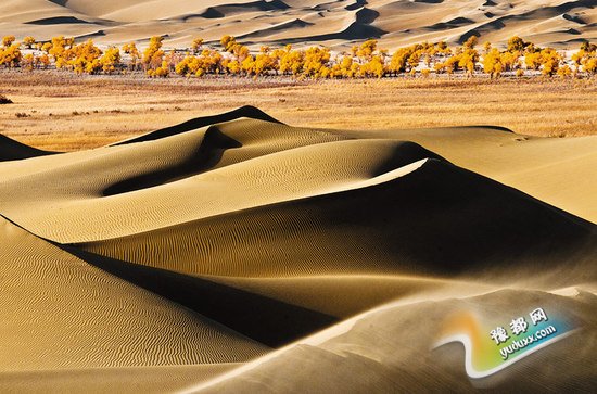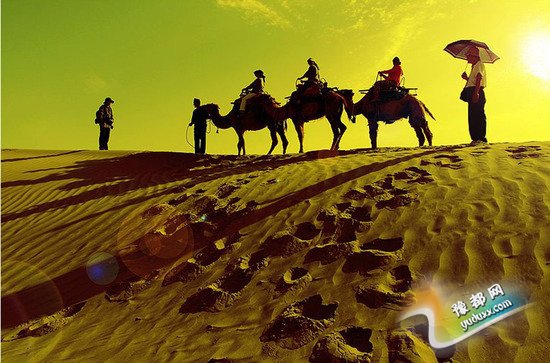 来到达瓦昆,一颗心变得无比宁静。阳光下的沙漠,像一块无边无际的金色丝绸,柔美地在眼前飘舞。来到这里,你会觉得,沙漠并不是静止不动的,而是在轻轻飘动的,像一条随风飘扬的丝巾一般。