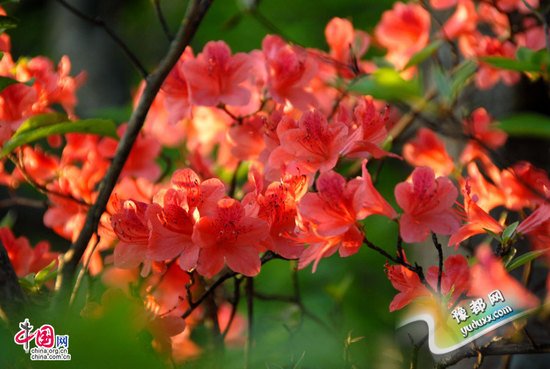 中国网2月23日讯 5月21日,是二十四节气之一的小满,夏季的第二个节气,小满时节中国大部分地区已相继进入夏季。到了夏季,昼长夜短,夕阳西下,有一个相对漫长的过程。到黄山旅游的人们可以从容地坐在山峰上尽情欣赏壮观日落景象。初夏的黄山,百花争艳,姹紫嫣红,花香扑鼻,在登山峰赏日落的路上,有时不妨放慢脚步,驻足欣赏身边的各种山花,这时的山花,夕阳余辉散落在花瓣上,就好像是镀上了淡淡的光亮,恰到好处,让山花更有光泽,更加艳丽。现在正是黄山顶上映山红等花儿开得最盛时候,有粉红色、白色和紫色,一位来自南京的女游客看到紫色映山红很是惊讶,说还是第一次看到。一团团、一片片、一簇簇的映山红,在绿叶的映衬下,更加好看,让人仿佛走进大花园里。