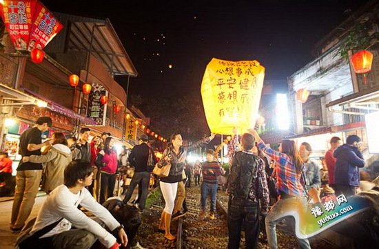 台湾平溪放天灯的传统已有2000年之久,为了庆祝中国新年结束,每到这一天,人们会放飞成千上万只天灯,照亮夜空,每一盏代表一个新年心愿。